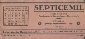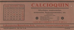 Calcicoquin y Septicemil Medicamentos del Laboratorio Bascuñana. Año 1939