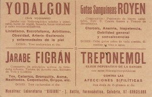 Medicamentos del Laboratorio Higione del año 1935. Sede en Barcelona