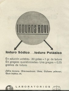 Anuncio publicitario del medicamento Ioduros Rovi en el año 1941