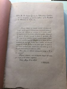 Dedicatoria a D. Antonio García de Villaescusa. Catedrático de terapéutica y materia medica en la Facultad de Medicina de Cádiz
