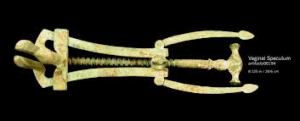 He puesto en la portada del Blog el espéculo romano, que es el encontrado en Pompeya, porque es el primer espéculo del mundo. Es el primer instrumento especifico ginecologico. Se cita en el «Corpus hippocraticum»  siglo V a.C, esta descrita la utilizacion del espéculo en las ulceraciones de la matriz  y en flujos vaginales, tambien su utilización en el recto. Celso (30 d.C) describe perfectamente como se utilizaba y como debiera colocarse a la mujer. Galeno 131 d.C. describe tambien enfermedades de la mujer y cita instrumentos para dilatar y mirar los genitales femeninos. Sorano de Efeso siglo II d.C relata como hay que calentar el espéculo, le llama «priapisco» que es el vástago que se introducia en la vagina y como habia que suavizarlo con manteca y como colocar a la paciente para la exploracion, cita al espéculo denominánddolo la «dioptra » como lo llamaban los édicos  griegos y que posteriormente reproduce este nombre los textos médicos de la escuela de Alejandria.