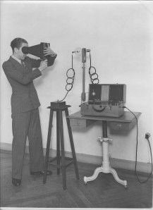 Esta imagen nos muestra como era en la realidad la utilización de la pantalla fluorescente y el aparato de Rayos X Sánchez.