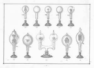 Mónico Sánchez Moreno en su fábrica de «Eléctrico Sánchez» de Piedrabuena (Ciudad Real) fabricó y distribuyó estos tubos para los Departamentos de Fisica y Quimica de las Universidades Españolas y de los Institutos de Enseñanza Secundaria. Funcionaban con su «Aparato Sánchez» de corriente de alta frecuencia.
