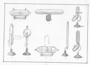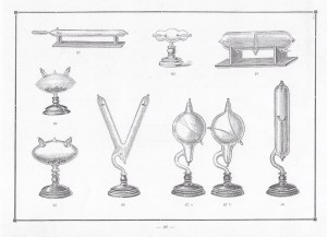 Estos son modelos fabricados por Mónico Sánchez que fueron los primitrivos tubos de Crookes, sin la cruz de Malta. Puede comprobarse la gran variedad de modelos Se fabricaron en vidrios fosforencentes de diversos colores, verde, rojo, azul, amarillo, urano. Con potasa cáustica para demostrar la influencia que el grado de enrarecimiento ejerce sobre la fosforescencia del vidrio.