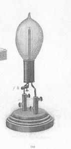 Es una lampara de incandescencia tipo a las de Edison, con elecrtrodo de alumina entre los filamentos de carbon
