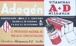 Vitamina A + D. Publicidad de medicamento en papel secante.
