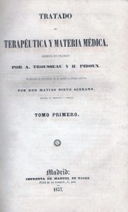 Tratado de Terapéutica y materia Médica de A. Trousseau y H. Pidoux. Año 1857