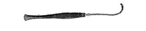 Era una aguja con mango incorporado de unos 25 cms, la aguja presenta un tramo recto o ligeramente curvado pero que en su extremo distal realiza una incurvación de 90º. El extremo perpendicular tenía unos 3 a 5 cms y tenia un ojal para la introducción del hilo de sutura