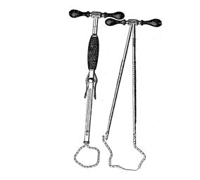 Es un instrumento que consta de una cadena que carece de dientes. Cada punta de la cadena se une a una de las extremidades de un vástago de acero y la otra extremidad a una doble palanca, que permite poner las varillas en movimiento. Por su lado externo las varillas de acero presentan elevaciones y depresiones que se asemejan a las cremalleras. Por su lado interno están dispuestas de modo que puedan deslizarse una sobre la otra. Se encuentran contenidas en una cánula, cubierta de madera por el lado de la extremidad opuesta a la cadena. A cada lado de la cánula hay un sistema que engrana con los dientes de la cremallera correspondiente.