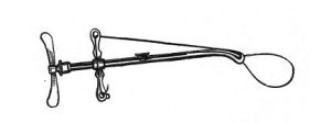 Es un constrictor que se introduce el hilo de sutura por una varilla perpendicular agujereada, se pasaba el hilo y podía ajustarse manualmente y posteriormente se ejercía presión con el tornillo central del extremo.
