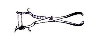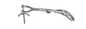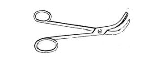 Es un craneoclasto simple. Como si fuesen unas pinzas fuertes. El extremo curvado para facilitar la penetración y el mango en forma de tijera.