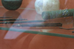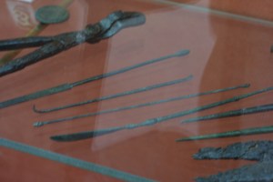 Vitrina del Museo Romano de Mérida con instrumentos médicos.