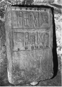 Imagen distinta y de diferente angulo del mismo espéculo, el mangum matricis, de Mérida. Esta imagen es de una expocisición en Mérida de piezas romanas emiritenses que están en el Museo Arquológico Nacional de España.