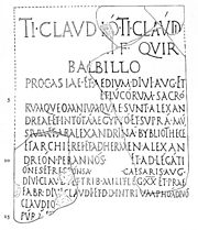 Es una inscripcion de Tibero Claudio Balbin que demuestra la existencia de la Biblioteca tras su supuesta destrucción, Tiberio Balbin desempeñaba un cargo «supra Museum et ab Alexandrina bibliotheca» combinando la dirección del Museo y la Biblioteca.