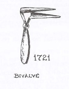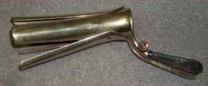 Espéculo de Ricord. Otro ejemplar tambien abatible, las puntas de las palas mas romas