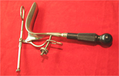 Es un espéculo basado en la valva de Sims, con mango largo y de ebonita, que tiene un tornilo para ficjar un artefacto que separaba la pared anterior de la vagina.