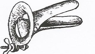 Es un espéculo bivalvo que tenia una pabellón externo ampular, moderamente grande para que ejerciera tope en el exterior de la vulva. Tornillo para la apertura de las valvas.