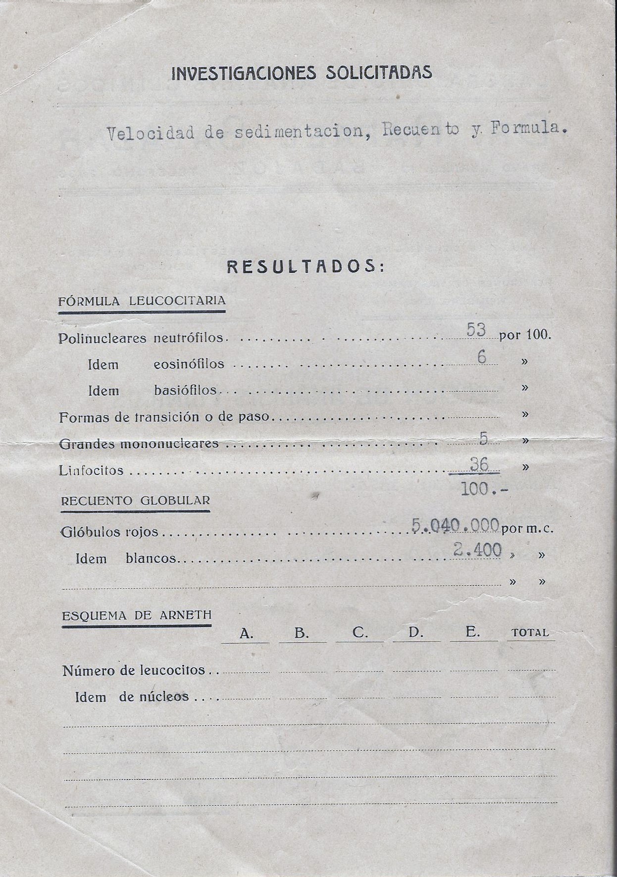 Analisis de sangre prescritos por el Dr. Rapado de Zafra.