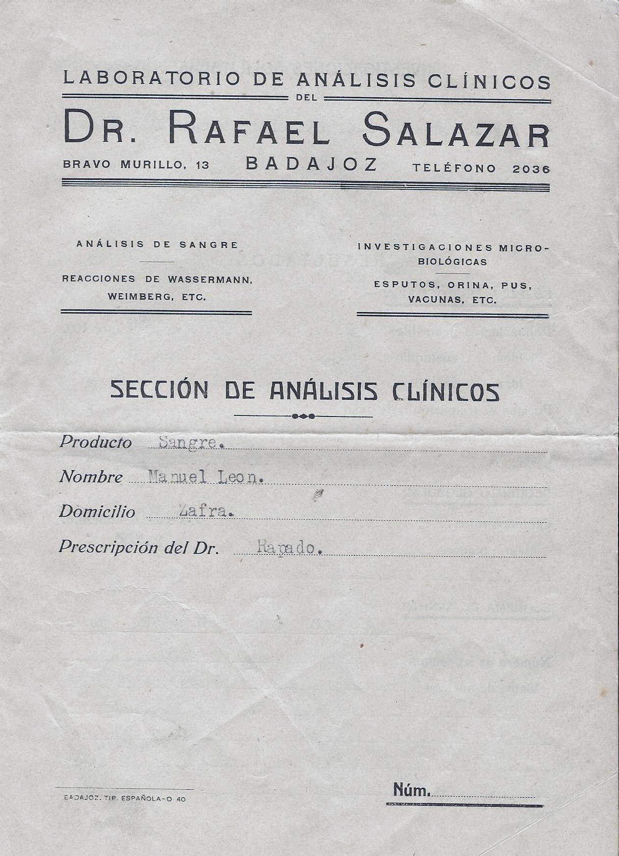 Analisis Dr. Rafael Salazar. 1940. de Analisis Dr. Rafael Salazar. 1940Analisis Dr. Rafael Salazar. 1940 Badajoz.