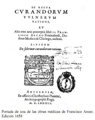 El tratado escrito por Arceo “De recta vulnerum curandorum ratione” es una recopilación de historias clínicas de su práctica profesional. Relata los síntomas que cuenta el enfermo, refiere lo observado y señala como fue la curación.