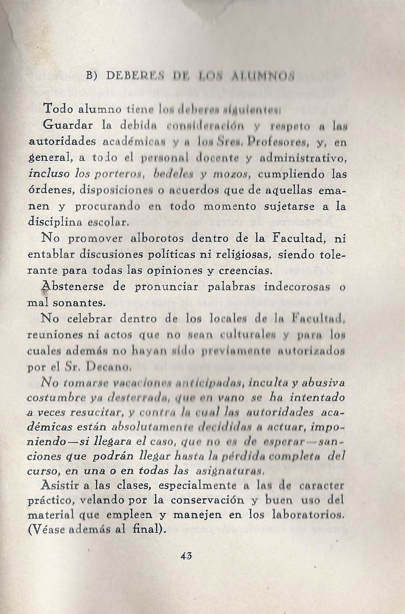 Deberes de los estudiantes de Medicina en la Facultad de Madrid. Año 1935 Deja un comentario Deberes de los estudiantes de Medicina en la Facultad de Madrid. Año 1935