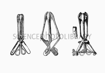 Describe números instrumentos médicos, pinzas hemostáticas para las arterias, gran variedad de fórceps, instrumentos y férulas de todas clases.