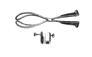Es un fórceps de ramas paralelas y asimétricas. Utilizaba la forma más curvada guiándose por el sacro colocando en situación posterior y la otra más corta en situación anterior. La articulación era mediante un tornillo en el extremo del mango