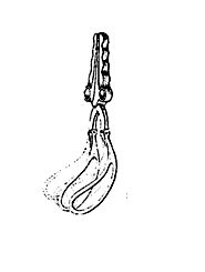 Es un fórceps curvo y articulación central, corta. Tiene un diseño de un mango angulado y con escotaduras para facilitar la sujeción y evitar deslizamientos.