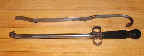Los ganchos fueron tomados probablemente de los aparatos comunes para la extracción de la actividad doméstica laboral o industrial. Muchas veces se utilizaron simplemente un instrumento o vástago metálico donde se le curvaba su extremo y este más o menos puntiagudo para la extracción de algún objeto; elementos utilizados en la extracción de cuerpos extraños y también en cirugía de guerra.