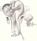 Aetius, empleaba dos ganchos para extraer la cabeza del feto muerto desde lados opuestos
