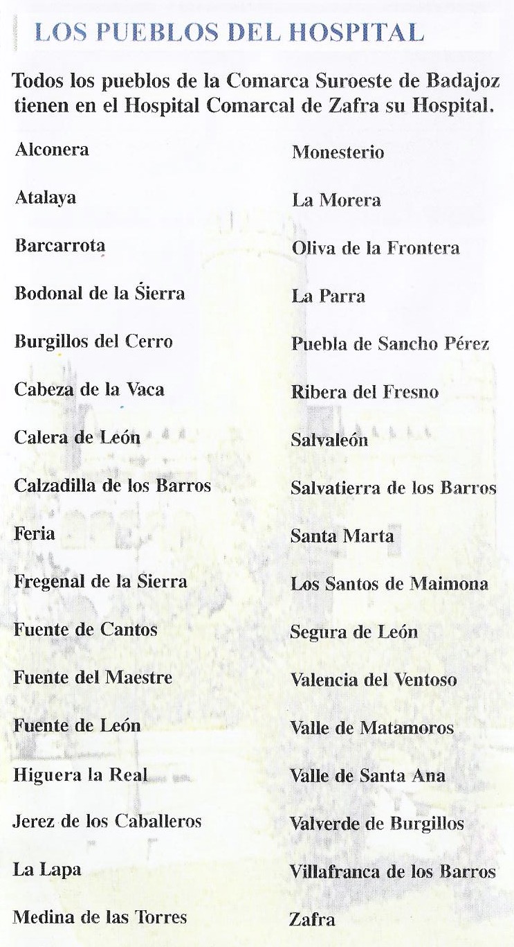 Pueblos que se ofrecía el Hospital Privado de la empresa Pascual. Año 2000.