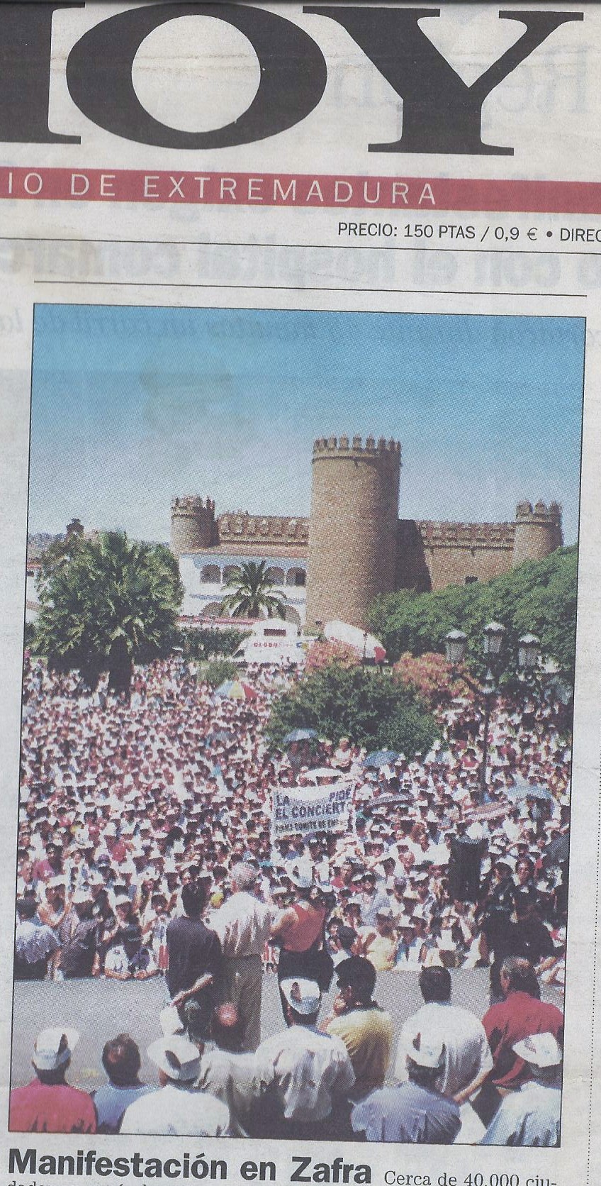 Publicación del Periodico Regional HOY del Hospital de Zafra y la Empresa Pascual. Publicado en primera página el dia 16 de julio del año 2000.
