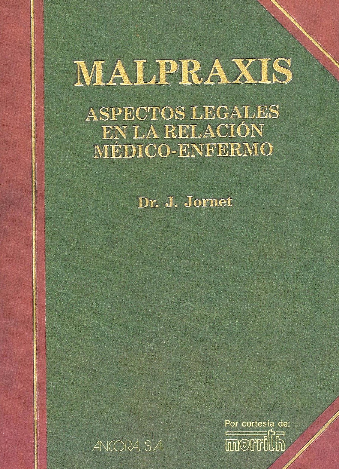 Malpraxis Deja un comentario Malpraxis Aspectos legales en la relación medico-enfermo. Autor: Dr. J. Jornet Editado por Laboratorio Morrith.ç Año 1991