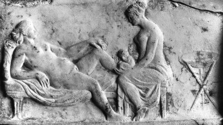 Sorano de Efeso, siglo II d.C., describe en sus libros la silla obstétrica. Además de los bajorrelieves encontrados de partos en sillas.