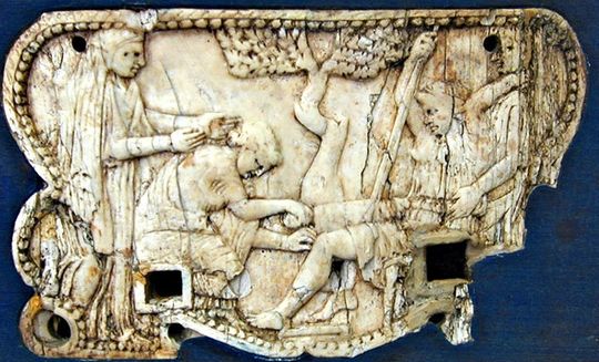Es una placa de marfil donde refleja un parto en una silla. Esta placa fue encontrada en Pompeya y se encuentra en el Museo Nacional de Nápoles