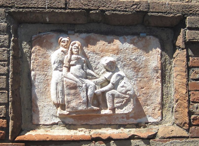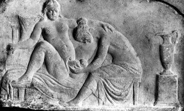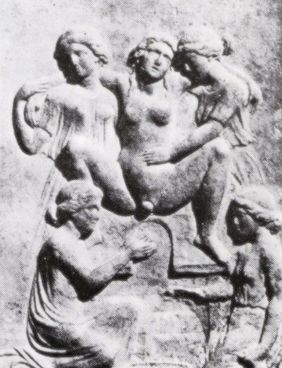 Otro bajorrelieve de Roma donde el parto es en una silla especial, puede verse la hendidura semicircular en el asiento