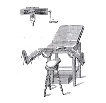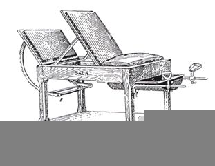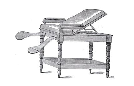 Existieron muchos modelos aunque todos tienen elementos comunes. Mesa, respaldo en plano inclinado y artefacto para colocar las piernas de la paciente separadas.