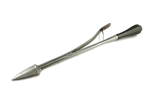 Abulcasis describe un perforador y pinzas para fetos muertos.