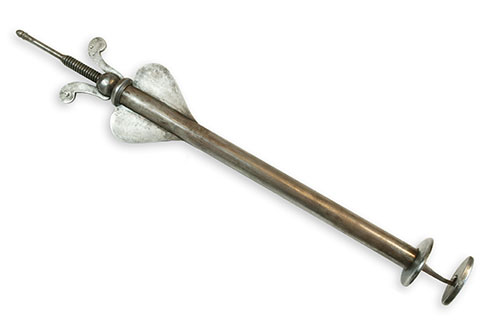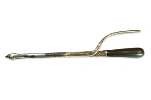 Es un instrumento largo fuerte que termina en una oliva con rosca en espiral. Se punzaba inicialmente y posteriormente mediante giros penetraba en la cabeza del feto muerto. Servia para extraer líquido y masa encefálica para poder reducir los diámetros cefálicos.