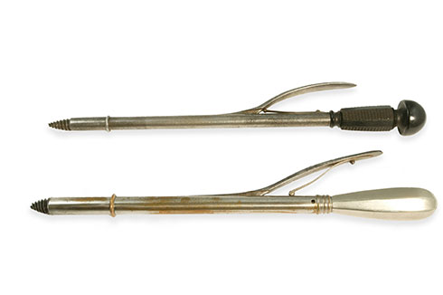 Los perforadores eran instrumentos para perforar los huesos de la cabeza del feto muerto intrautero, al perforar salía liquido y tejido cefálico que reducían los diámetros cefálicos y facilitar posteriormente su extracción.
