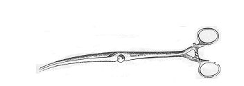 Es una pinza larga, levemente curvada. Mangos de tijera y varilla ranurada.