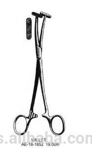 Es una pinza en forma de T. Se utilizaba para coger tejidos en restos placentarios en cervix y tambien para extraer las membranas placentarias en las cesareas.