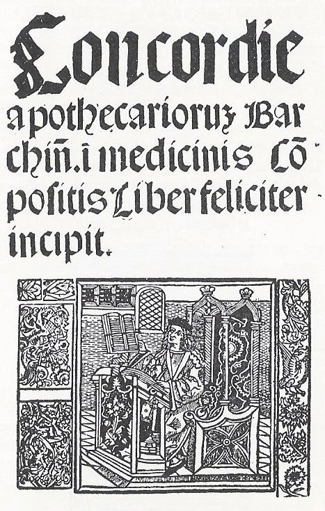 Titulo original: “Concordie Apothecariorum Barchiñ.i medicinis” de Barcelona en el año 1511.