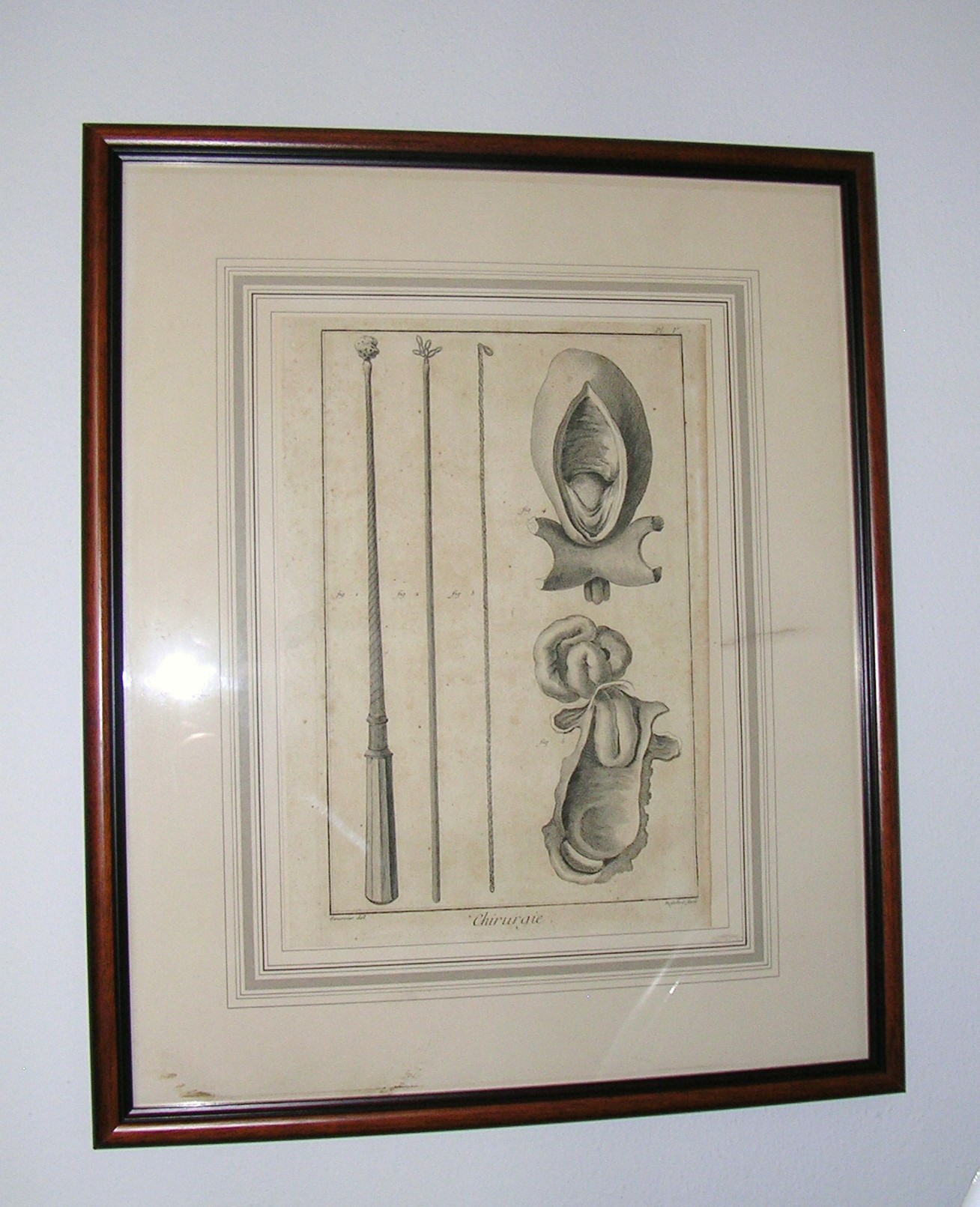 Grabado de Chirurgie. Grabado de Chirurgie. Grabado que3 pertenece al Despacho del Dr. Cabacas Grabado de Chirurgie. de la Enciclopedia de Diderot y D¨Alembert del año 1777- Representa instrumentos ginecologicos y una perforación uterina