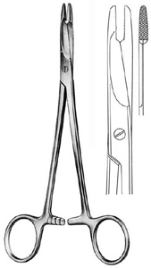 Es un instrumento en los que es difícil de precisar su origen, proceden de las pinzas y de las agujas que tienen unos antecedentes muy remotos. Las pinzas y las agujas utilizadas en medicina provienen de las de uso común del ajuar doméstico. Conocidas y utilizadas desde el comienzo de la antigüedad, Las primeras pinzas fueron los dedos de la mano y las primeras agujas probablemente de madera y huesos de animales, primero como punzones posteriormente con ojal para la inserción de algún material que sirviera como hilo.