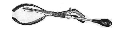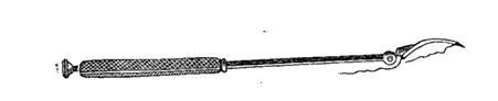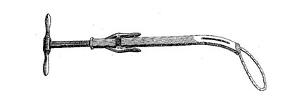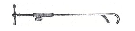 Es un instrumento largo de unos 25 cms. El vástago tenía dos partes para abrirlo y también para realizar presión en su extremo para coger la aguja con fuerza. La cara interna del extremo era ranurada, a veces con hendidura para acoplar la aguja.
