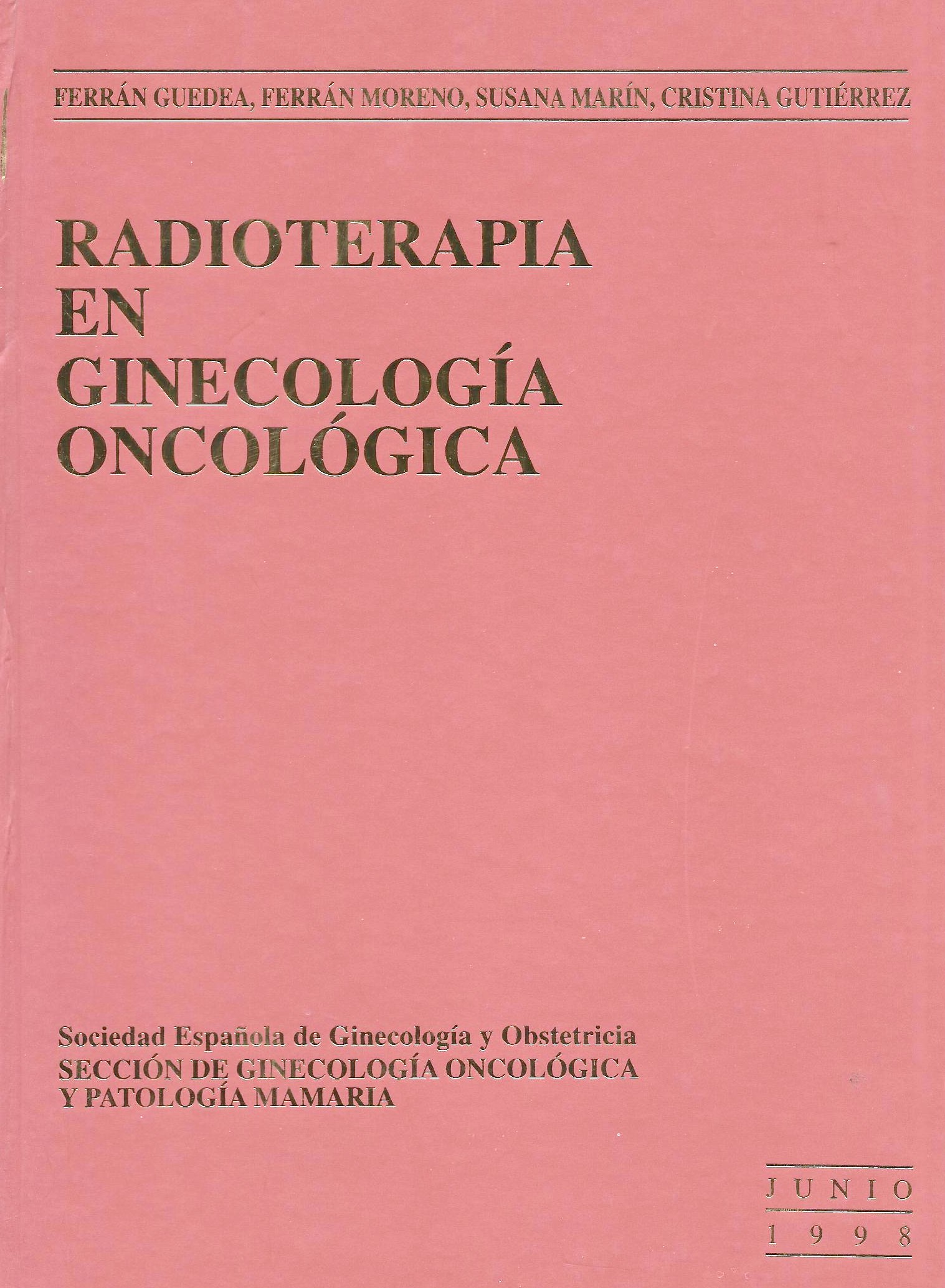 Radioterapia en Ginecología oncológica Deja un comentario Radioterapia en Ginecología oncológica Autor: Ferrán Guedea y otros. Servicio de Radioterapia del Hospital Duran y Reynals. Editado por la Sociedad Española de Ginecología y Obstetricia. Sección de ginecología oncológica y patología mamaria Año: 1998