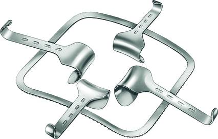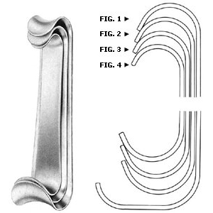 Consite en una placa metálica doblada en sus dos extremos y acanalados, como si fueran dos valvas unidas, terminando en bordes romos para no dañar a los tejidos.