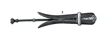 Eran pinzas con resorte en el mango. En el extremo se abría con dos o más ganchos para sujetar el algodón o esponja otras veces era un tubo metálico con un mandril para producir taponamientos para cohibir la hemorragia.