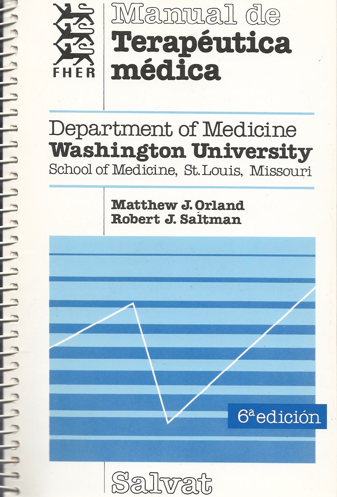 Terapéutica Médica Deja un comentario Terapéutica Médica Departamento de Medicina de University Washington Autor Matthew J. Orland y Robert J. Saltman Editado por Salvat. Distribuido por Laboratorio Fher Año 1986